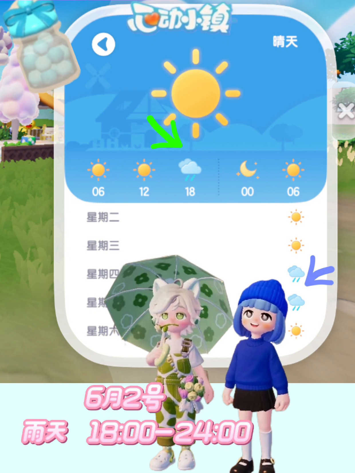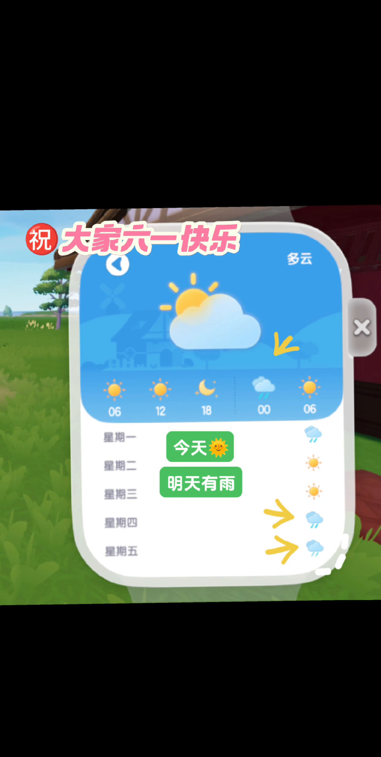 祝大家六一快乐🌈 礼包码:待更新 天气:🌞 无瑕莹石2号房前 溜溜橡木11号房前 活动时间表 12:00 海钓 21:00 海钓 11:00 引虫出洞 20:00 引虫出洞 限定活动 13:00浪花会发起稚趣玩具虫事件 18:00万尼亚发起稚趣玩具鱼事件#心动小镇 #小镇庆典稚趣园 #心动小镇攻略 #心动小镇无瑕莹石 #小镇稚趣园