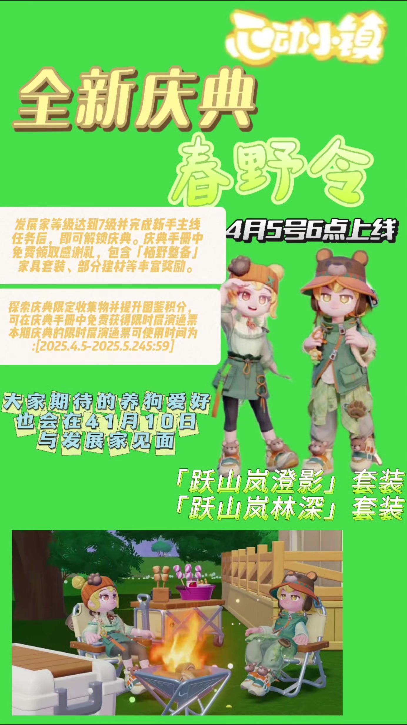 发展家等级达到7级并完成新手主线任务后,即可解锁庆典, 庆典手册中免费领取感谢礼,包含「栖野整备」家具套装、部分建材等丰富奖励。 探索庆典限定收集物并提升图鉴积分,可在庆典手册中免费获得限时展演通票。 本期庆典的限时展演通票可使用时间为:2025.4.5-2025.5.245:59 养狗爱好也会在4月10日与发展家见面#心动小镇 #心动小镇创作计划 #小镇庆典春野令 #心动小镇攻略 #心动小镇更新