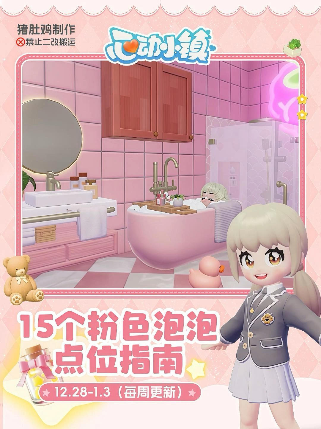 本周共15个泡泡位置已全部更新 泡泡里物品随机:如满愿星,家具,材料等 卫浴四件套(粉色浴缸,马桶,洗手台,淋浴间)#心动小镇 #心动小镇创作计划 #心动小镇甄嬛传联动 #心动小镇每周泡泡