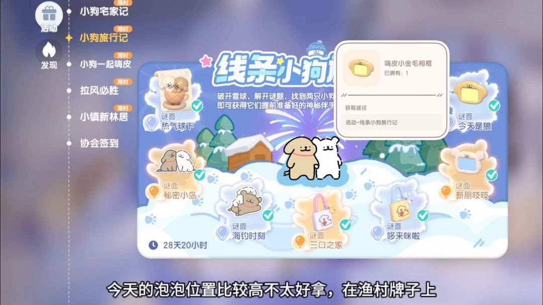 12.20心动小镇线条小狗旅行记今天是狼泡泡位置及拿取方式