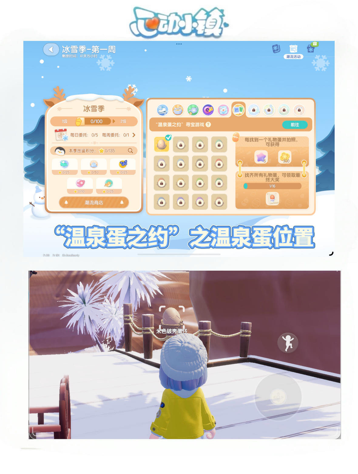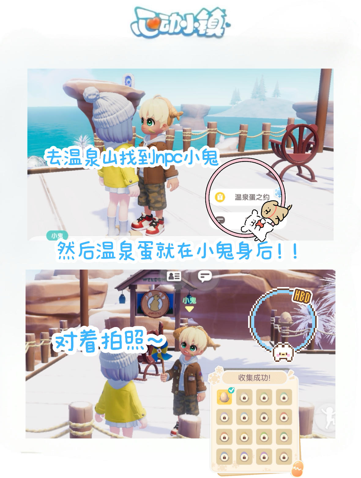 小鬼的寻宝游戏开始啦,第一个的温泉蛋位置非常好找!找到16个温泉蛋就可以领取温泉蛋食谱~#心动小镇 #心动小镇冰雪季创作征集 #心动小镇畅玩小镇冰雪季