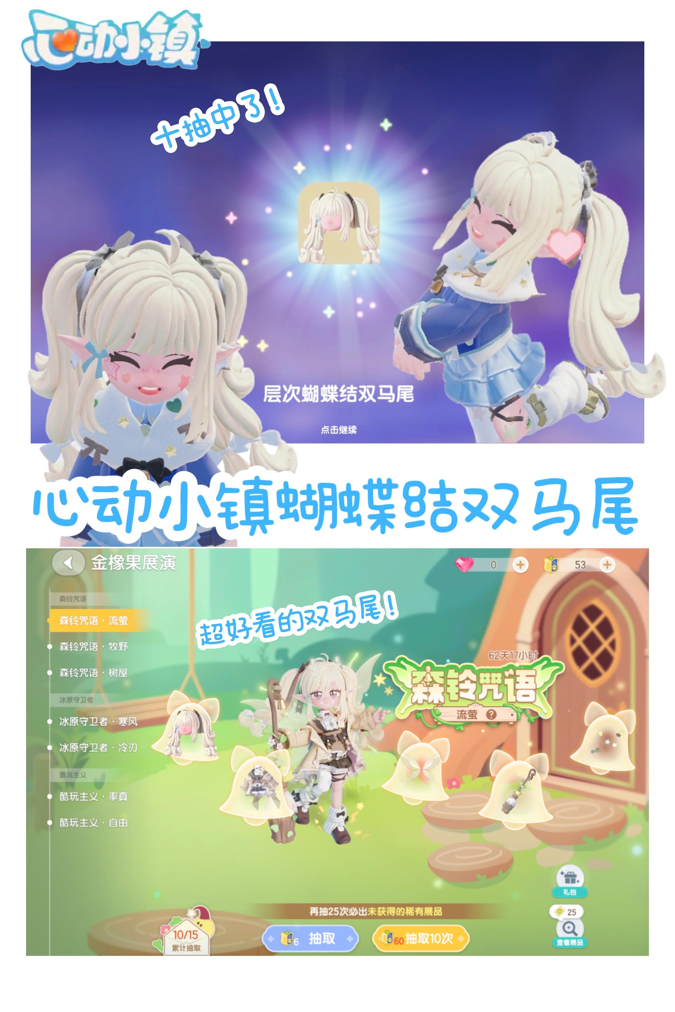 🥳今日份美丽是蝴蝶结双马尾给的!超幸运!🥹十抽出了头发!超级可爱的双马尾呀!!还没领取十抽的快去邮箱领取!#心动小镇 #心动小镇冰雪季创作征集 #心动小镇畅玩小镇冰雪季