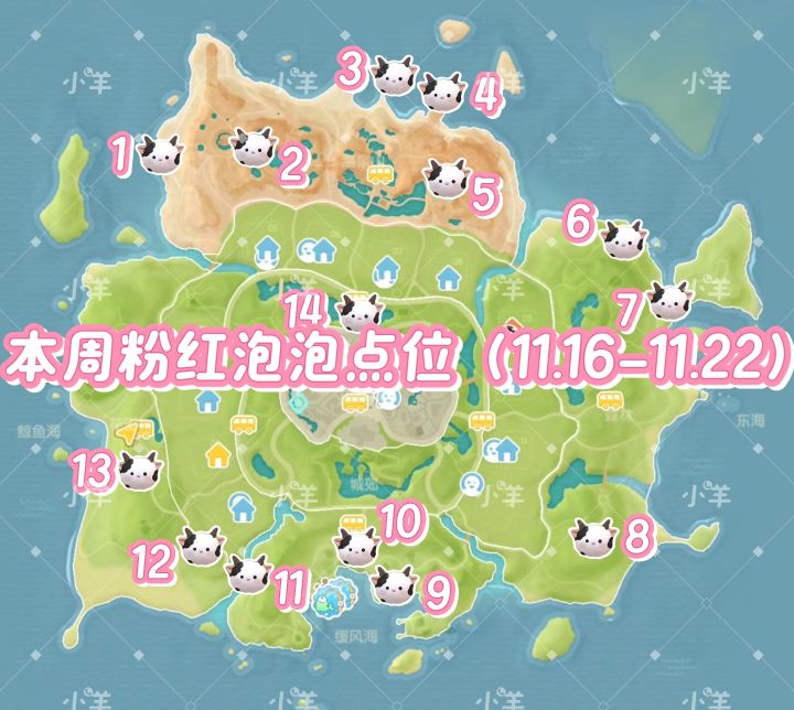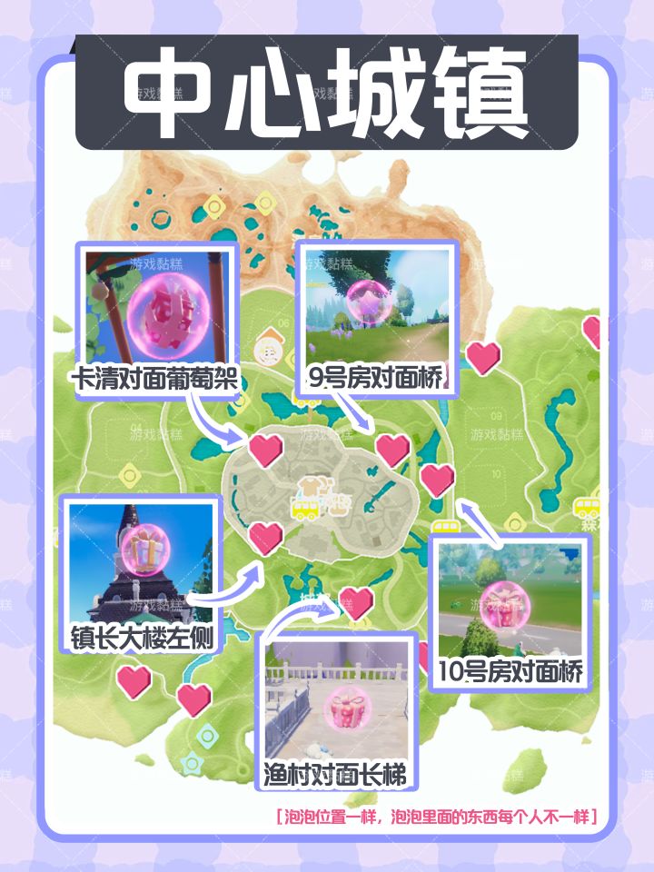 心动小镇本周6.7-6.13|15个粉色泡泡位置
