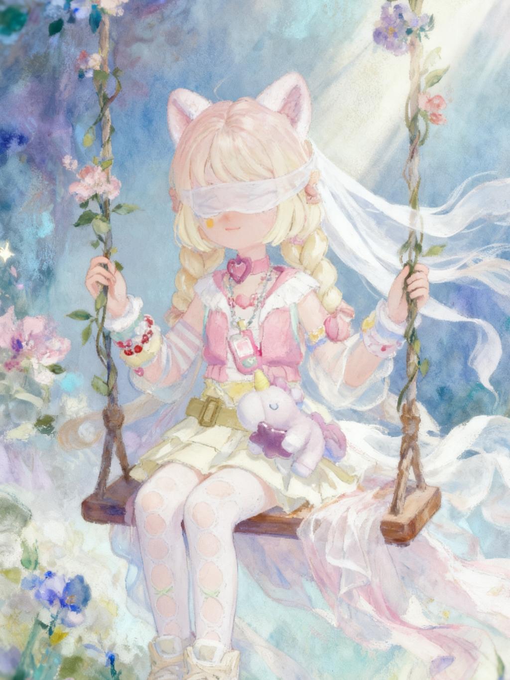 #心动小镇绘衣心声 沐着月光的静流,蝶翼不扬,花簪不语。浅金长发挽着珍珠的温婉,雾蓝眼罩掩住尘嚣,羽翼敛在身后如凝住的云。裙上的月与蝶,沉淀成诗,她立于时光的留白处,把所有喧嚣都酿成了心底的一汪平静~ #心动小镇绘衣心声