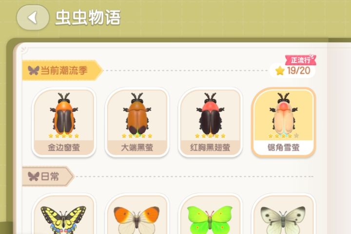 这两天参加了四次萤火虫事件,拿到了第一个五星虫子。同时也发现触发萤火虫的神秘事件好像有规律。 很早之前就看到有人发过:在第二阶段去到森林岛就会触发神秘事件,以前试过没用。但是现在潮流季快结束了为了集齐图鉴什么方法都试一下,没想到好像真的有用。 不过,我这里终究只有四次实验数据,具有偶然性,大家如果有试过的话可以交流一下,看看这样是不是真的有用#心动小镇 #心动小镇创作计划#小镇奇思妙想