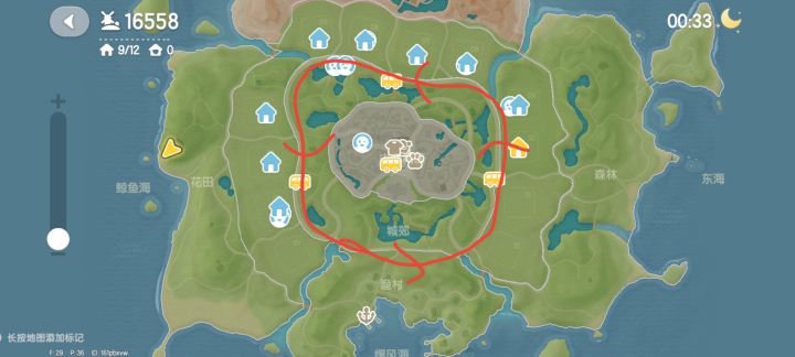 #心动小镇攻略征集 #心动小镇攻略 #心动小镇资源 #心动小镇蓝图 #心动小镇家具 心动小镇新人第二天,背包全是材料。图1为整个地图~接下来为大家详细讲解你需要的资源,更快更迅速更方便的获取。ps蓝图需要升级小镇等级才出现,一般第三天完成所有委托和任务就可以开启蓝图了图2,红线处:可获得🍎苹果+🍊橘子+蓝莓+木材+石头+灌木枝(三种食物+三种资源),只需要围绕着房子内圈的路一路走下来,遇到