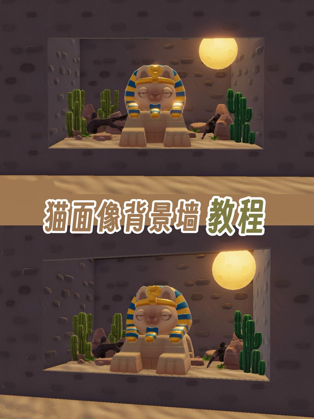 材料单: 狮身猫面像(猫咪时刻图鉴获取) 月球灯(没有可换成其他壁灯) 山石鸟站架 仙人掌们🌵 做客厅/玄关背景墙或外景装饰都可以~ #心动小镇 #小镇庆典春野令 #心动小镇教程 #心动小镇新居攻略 #心动小镇装修 #心动小镇造景 #建造 #休闲游戏 #游戏种草计划
