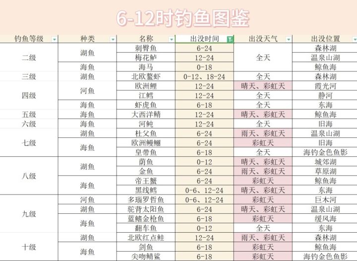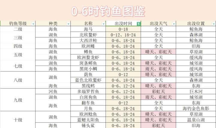 🐟彩虹天🌈钓鱼彩虹天出没鱼类图鉴🐟