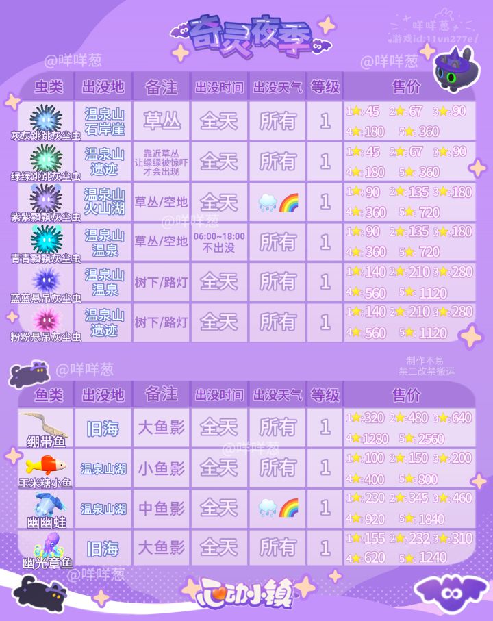 心动小镇奇灵夜季虫子与鱼攻略图(带售价