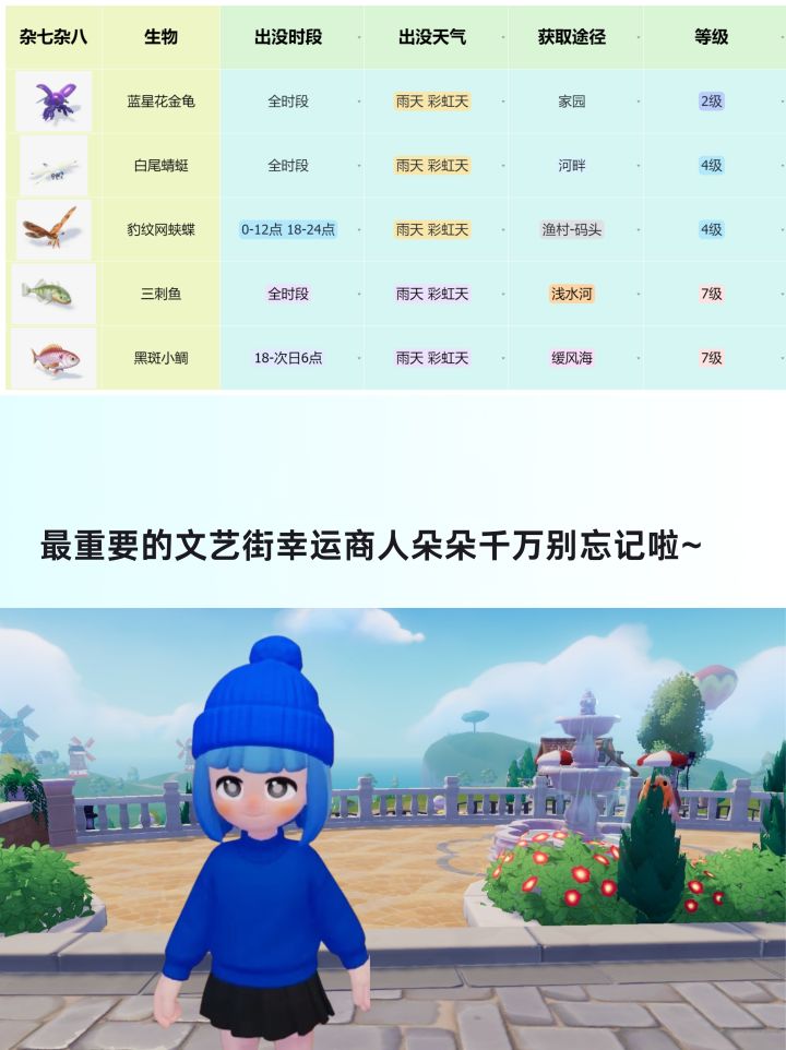 观鸟、捕虫、钓鱼,1-10级一篇搞定!雨天限定出没物种:蓝星花金龟 白尾蜻蜓 豹纹网蛱蝶 三刺鱼 黑斑小鲷 七星瓢虫 小斑蜻 贻贝 东蓝鸮 白斑狗鱼 美丽星花金龟 金鱼 绿贝矩蛱蝶 异色瓢虫 小火烈鸟 阔翅豆娘 深山锹形虫 黄金鬼锹 雕鸮 北极红点鱼 蝌蚪 四星瓢虫 黄喉蜂虎 长耳鸮 杜父鱼 游隼 锥头螳 白头硬尾鸭 #心动小镇 #心动小镇创作计划 #心动小镇攻略 #心动小镇捕虫 #心动小镇观鸟