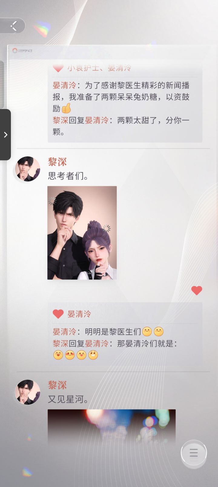 黎医生的爱真的不直白 他的爱大部分都很细致 在克制自己的同时也在小心翼翼地试探 理性温柔这点真的非常非常戳我 被爱的感觉真的特别好 #心动时刻征集#恋与深空