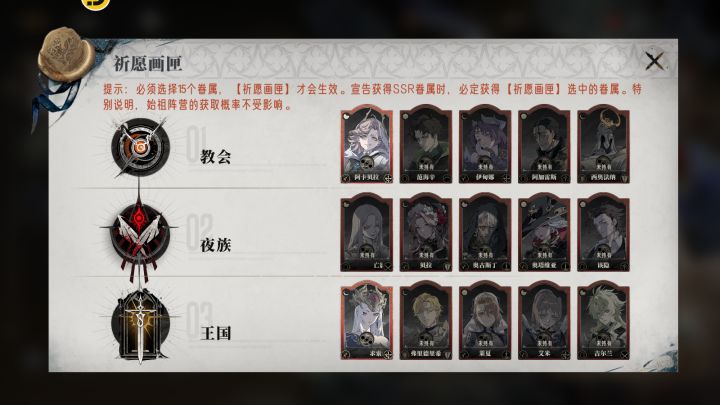 #心愿 这个心愿表不是一成不变的,根据抽的角色有变动有「归乡的哈缇」琪安德、尼可、阿加雷斯优先级上调有「归乡的诺亚」,佩尔 切西亚 优先级适度上调