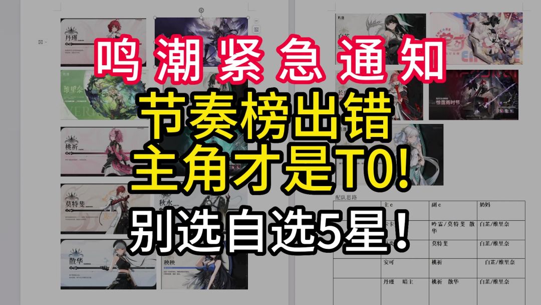鸣潮强度榜全错,主角才是T0!自选5星别乱选留着!