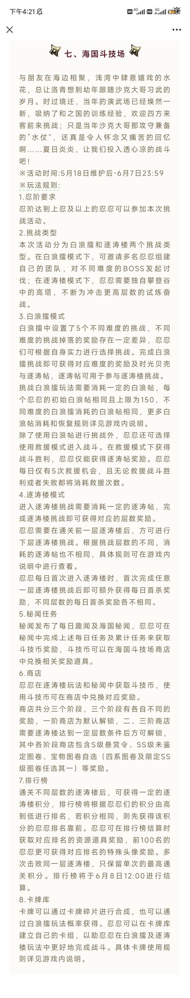 首先在此声明,因为没有料到咱们官方在炒冷饭这方面还能搞出这种烂活,所以本人并没有留存过以前活动的图片,所用以前活动的图片均出自阿b上能找到的各类相关视频,还请谅解其次,本人是火舞前时代入坑的玩家,目前二区幻忍二星零氪633卫322隼选取对照活动为2023年海国斗技场,是我有印象包括实际翻找更新公告后确定的和镜界活动最为相似的老活动选取关键词:五级难度,多人模式,单人爬塔图1为海国斗技场活动