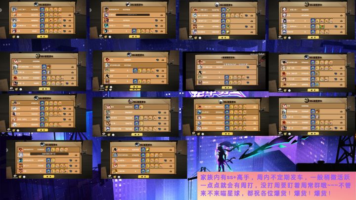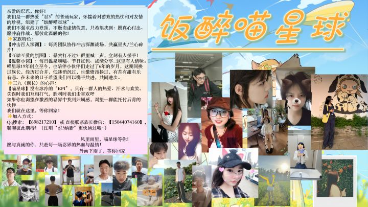 饭醉喵星球招人啦,深渊家族哦~主微信群,族长不定时发红包(节假日红包、生日红包等),每周抽奖礼物包括但不限于:红包、奶茶、当季水果、周边、神龙等等……宣传图仅为展示部分成员及日常(盗用必究)深渊稳定62,冲击64,联赛随便进~qq接待群:698217210。#忍者必须死3 #忍者必须死3家族招人 #忍者必须死3家族招募 #忍三家族
