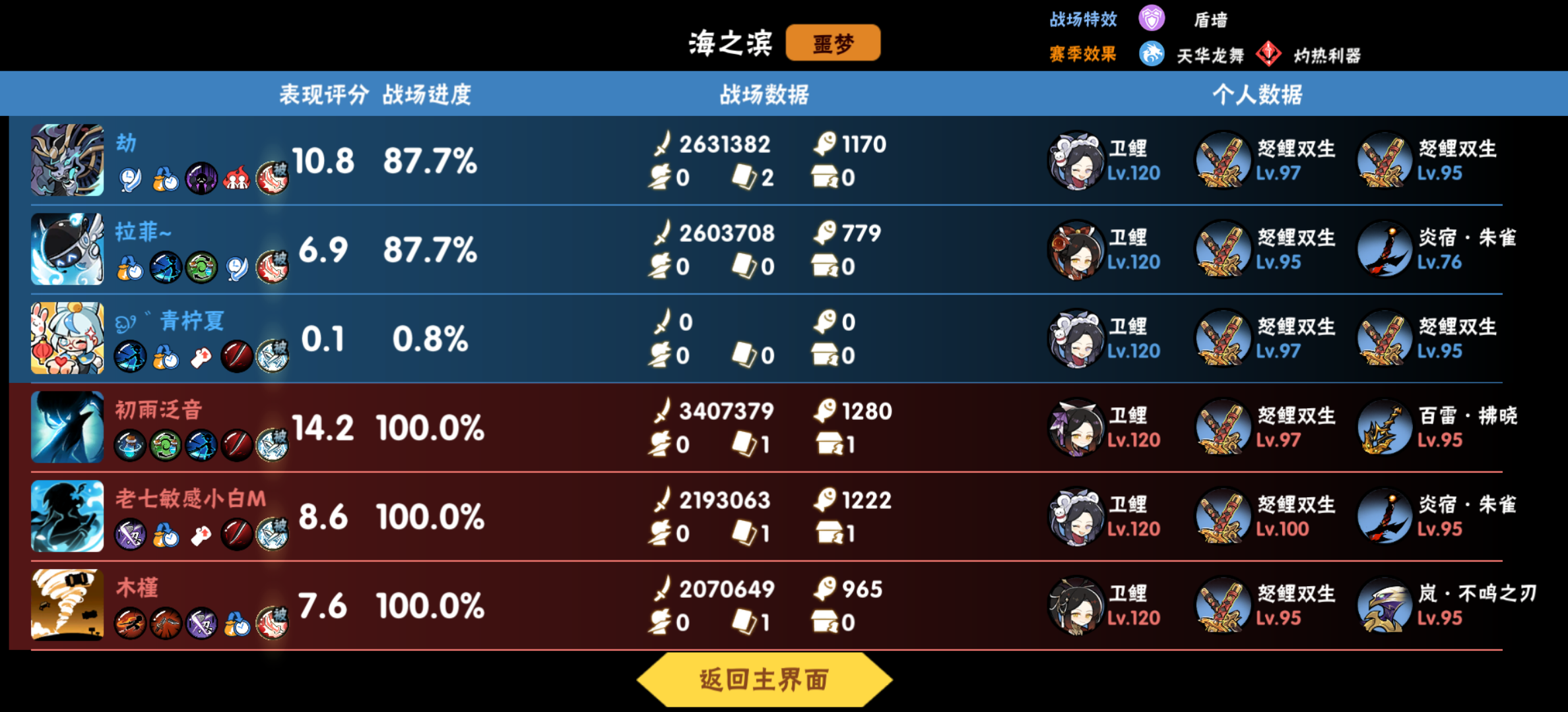 上条被夹了。。。重发一次。不出所料又数值膨胀了。卫鲤平推55的数据只能说确实确实。还把本人最爱的雪舞的打龙子给抢了.............听说33改的挺不错不过没啥时间也没一起玩的朋友所以也就看看视频了。其实从出了星闪,不,应该是更早老苍没落这游戏大抵就是在邹下坡路了吧。说实话就算过年或者下周年就宣布关服忍四启动也不觉得意外了。另外本人其实是开服玩家。19年初来着?不过当时这游戏才起步所以现