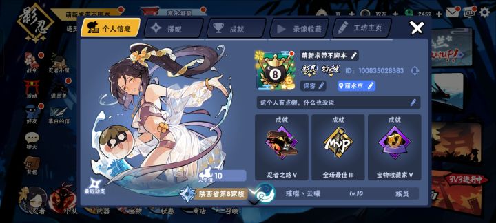 图片是我自己号,希望求一个紫原的账号,配置不用太高,4500左右即可。三三日常没有问题,竞技场可以到山脚,不抽卡不花勾玉,不换组织,深渊没问题,团本没问题,求求大佬看看#忍者必须死3 #忍者必须死3共号 #忍者必须死3周常