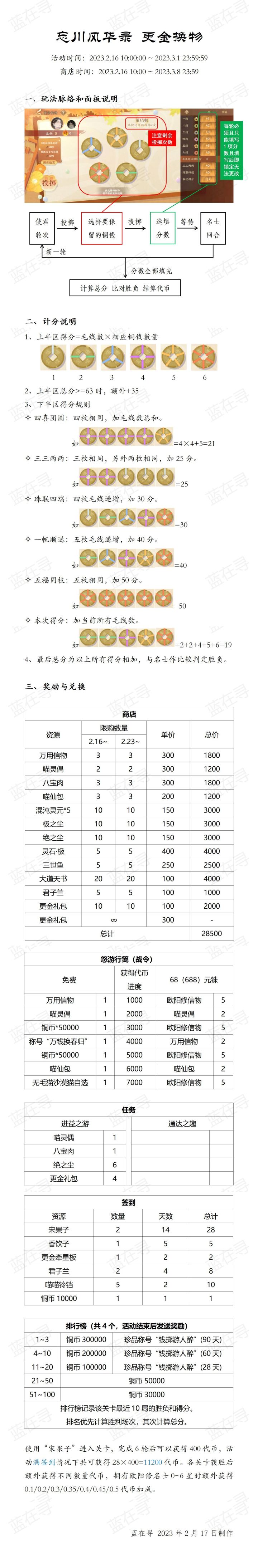 p1 玩法介绍和兑换统计p2 欧阳修关卡攻略,是个人的一些思路,也欢迎大家讨论不同想法,但是本次活动运气占比较高,所以没有拿到高分也不必太伤心。#攻略#忘川风华录手游#忘川攻略