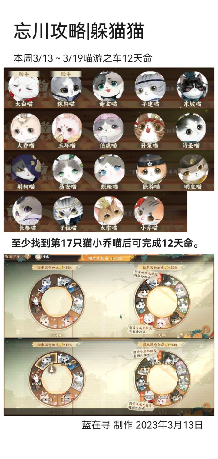 本周3/13~3/19喵游之车12天命至少找到第17只猫小乔喵后可完成【躲猫猫】全攻略传送门玩法解读→https://www.taptap.cn/moment/336829366610693982?share_id=d7b531c08bc6&utm_medium=share&utm_source=copylink线索整理→https://www.taptap.cn/moment/34680