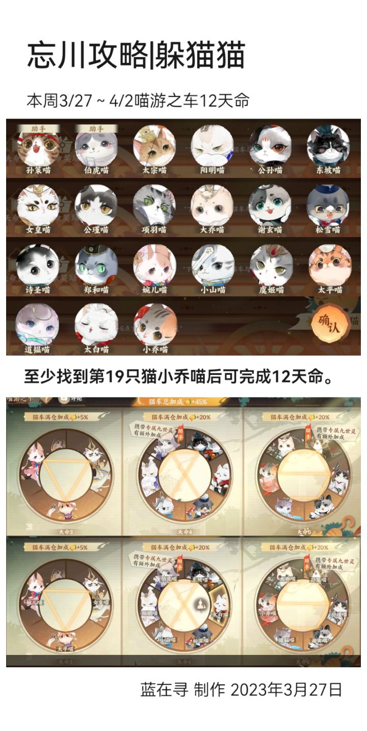 本周3/27~4/2喵游之车12天命至少找到第19只猫小乔喵后可完成【躲猫猫】全攻略传送门玩法解读→https://www.taptap.cn/moment/336829366610693982?share_id=d7b531c08bc6&utm_medium=share&utm_source=copylink线索整理→https://www.taptap.cn/moment/346802