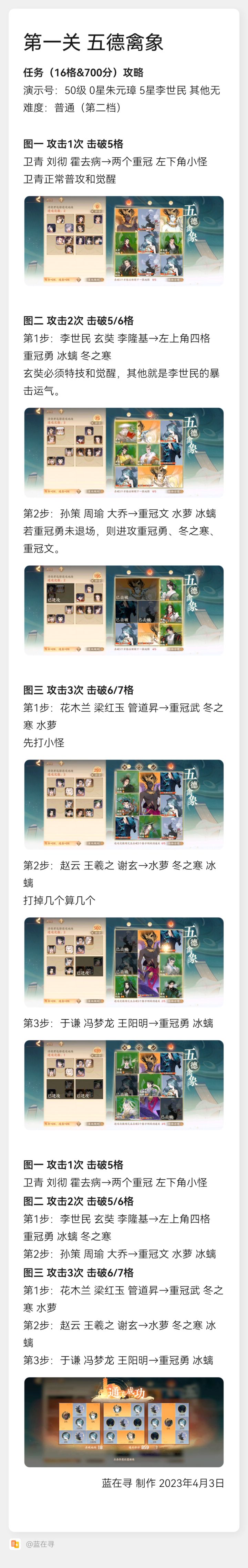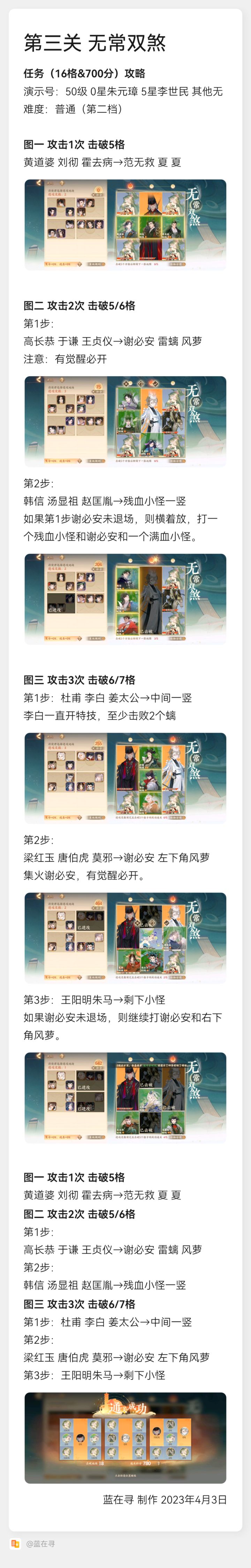 【百象弥新】【百象轮转】攻略2前四关任务(16格&700分)达成攻略(图文)【新手/全练度适用】攻略1 玩法介绍&实战提分技巧https://www.taptap.cn/topic/23051513?share_id=3e91968f4a9b&utm_medium=share&utm_source=copylink演示号:50级 0星朱元璋 5星李世民 其他无难度:普通(第二档)视频(