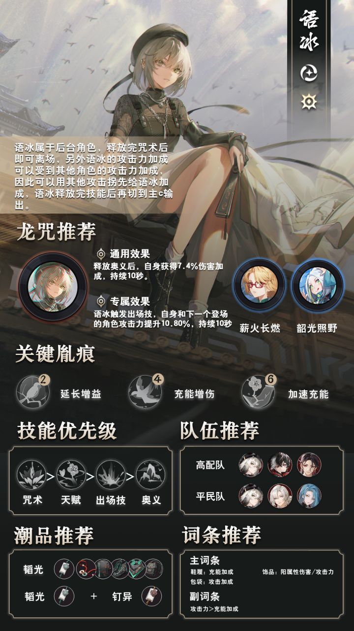 刚开始玩的导演可以详细阅读让你焕然一新这次是女角色篇,从编队-龙咒-潮品等等细节作为推荐,可以让你一目了然归龙潮的导演们,给我冲起来吧!文攻略的来源自龙潮大王攻略组归龙潮的角色数值和玩法来源作者服,一切要以四测正式服为准#归龙潮 #归龙潮攻略 #快上号龙潮阁 #归龙潮技术测
