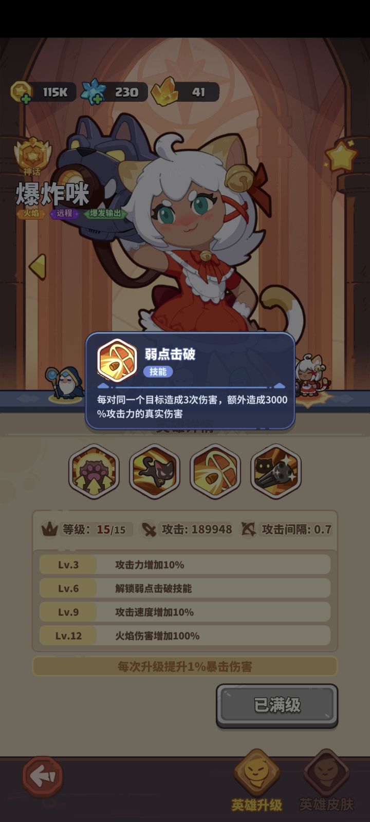 15级猫,打困难,不开终极技能,3技能是失效的,开了技能,局内攻击才8万多,局外明明18万#快来当领主官方 #游戏bug