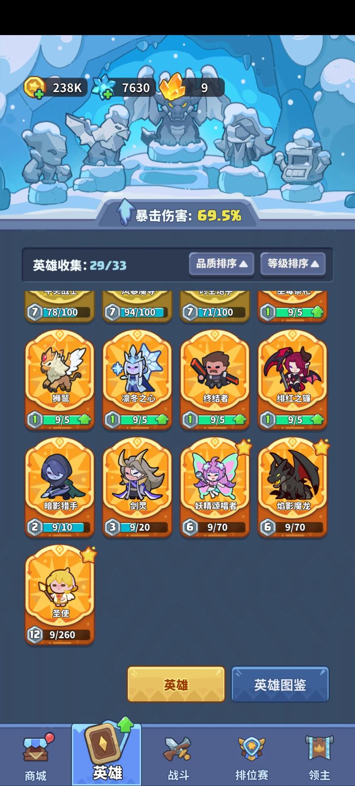 最新版本的每天打排位收益最高 每把30多钥匙但是很多人都不会打排位今天就详细讲一下排位应该怎么打首先不用担心配置问题我的号配置是4+3 15剑圣12猫12冰女上的宗师在宗师段位可以随便打钻石以下基本只要多打就能上钻石主要说钻石以上排位 先说现在排位需要的英雄现在排位常用英雄:猫 剑圣 天使 刷币 妖精 冰女 莹猫剑圣优先15 刷币和妖精优先12标准阵容是4刷币2妖精3-4剑圣#快来当领主