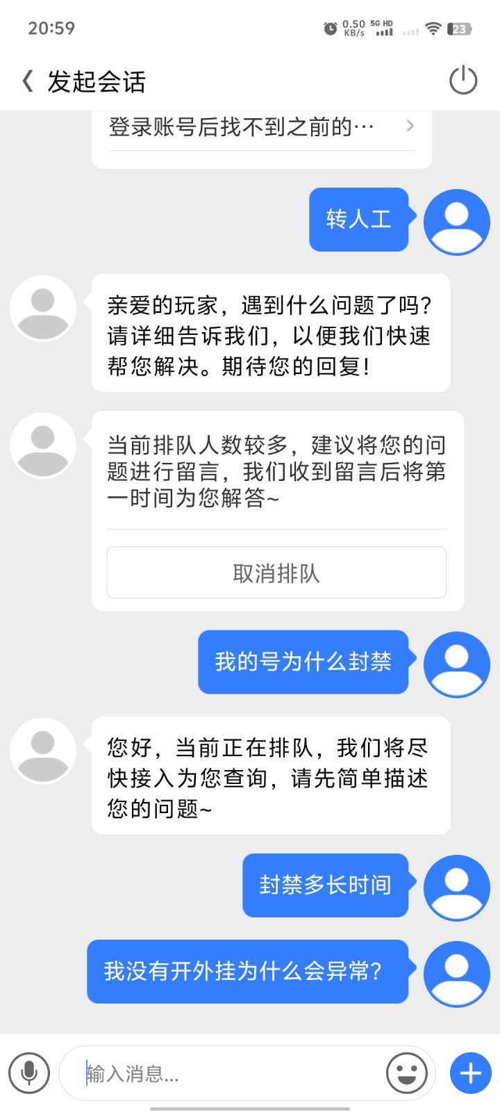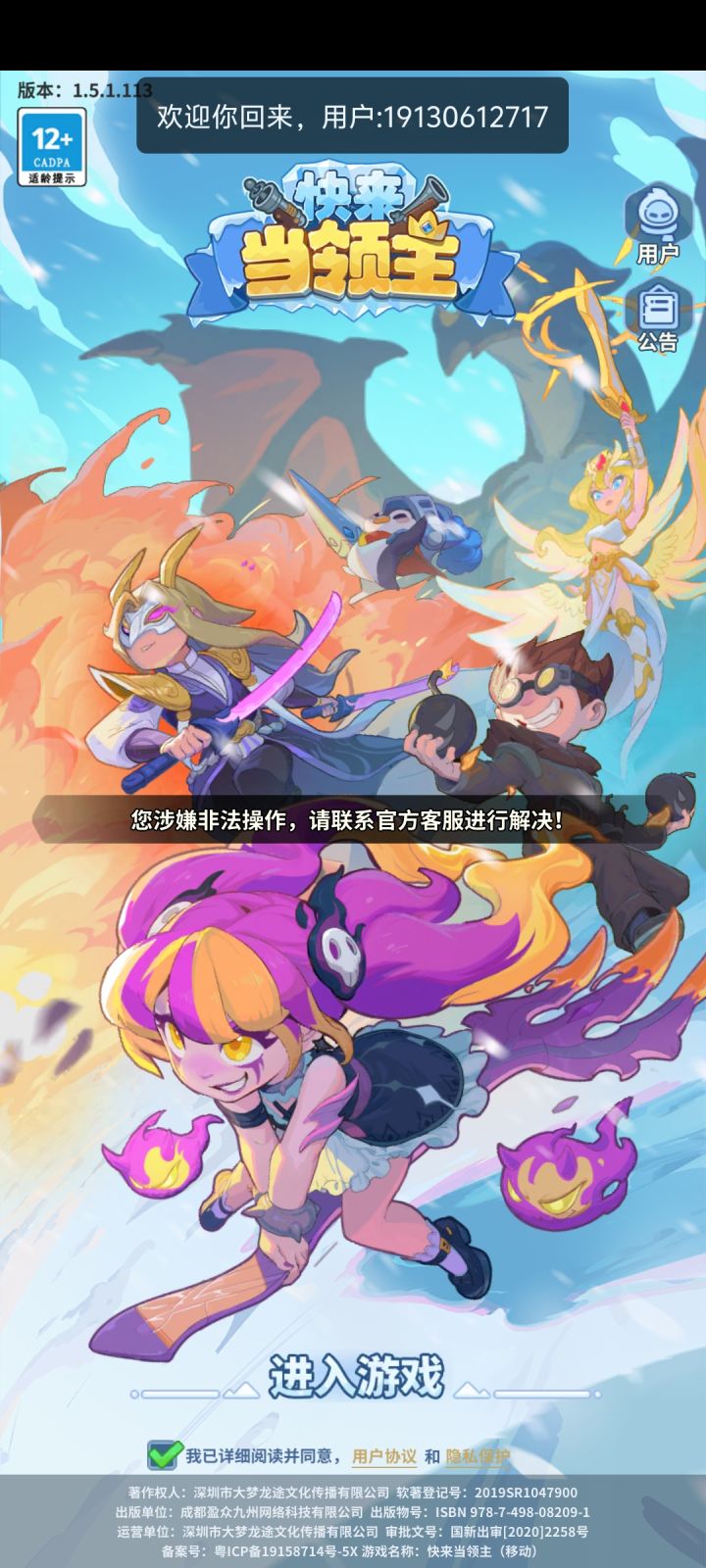#快来当领主 #快来当领主官方 正常游玩,突然被t下线,说违规操作,我的号200爆伤4锤5箱,没少氪,我会去开挂?唯一违规的可能就是骂客服了,游戏全是敏感词,自己起的英雄但是游戏里字都打不出来,不该改进嘛?就可以无缘无故封号?问客服人工啥原因根本排不上队,官方能出来帮我解决一下嘛?什么原因封的,封多少天,给个说法 别让网友寒心,这游戏我陆续也充值了好几k了。