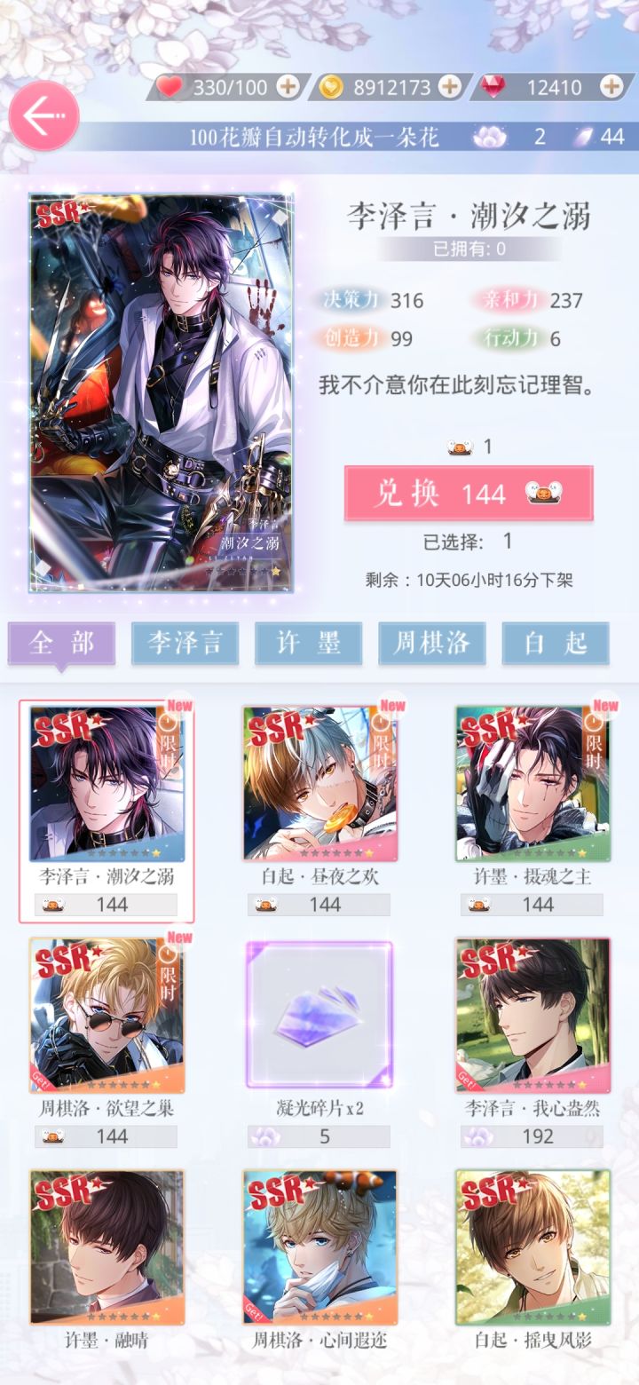这种活动的卡居然不是通过抽卡获得吗……是要到100抽才能自选得一张卡吗emm,感觉有点难啊#恋与制作人李泽言 #恋与制作人周棋洛 #恋与制作人抽卡