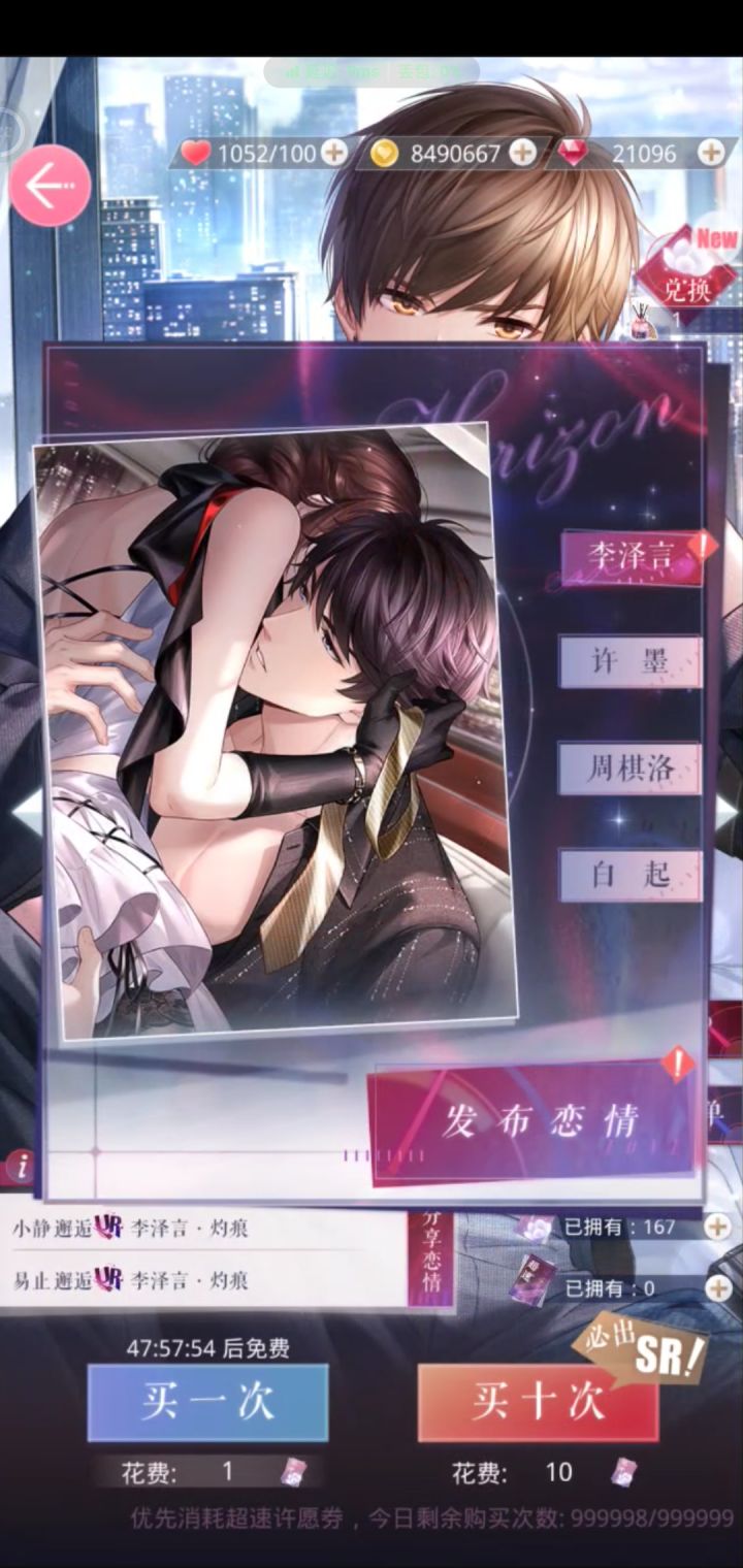 #恋与制作人抽卡 一个十抽两张ssr开心🥳