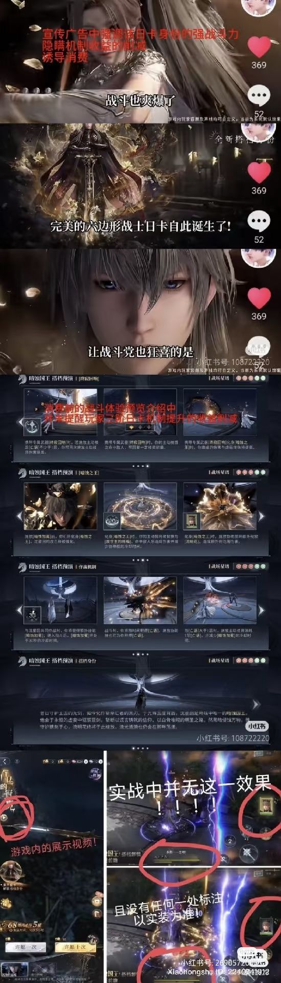 上海市杨浦区企业上海叠纸互娱网络科技有限公司旗下游戏【恋与深空】虚假宣传诱导消费,侵犯消费者权益。7月25日该游戏上架限时抽卡活动,包括我本人在内的大量消费者相信官方在游戏内发布的宣传片(游戏内外宣传片里均无任何免责声明,无“仅供参考”的标注字样),为该游戏充值抽取游戏卡[夜誓]以获取游戏商品战斗搭档[暗蚀国王],当天恋与深空登顶中国IOS营收榜第一(预估流水金额超亿元)。随后大量玩家实际使用并多