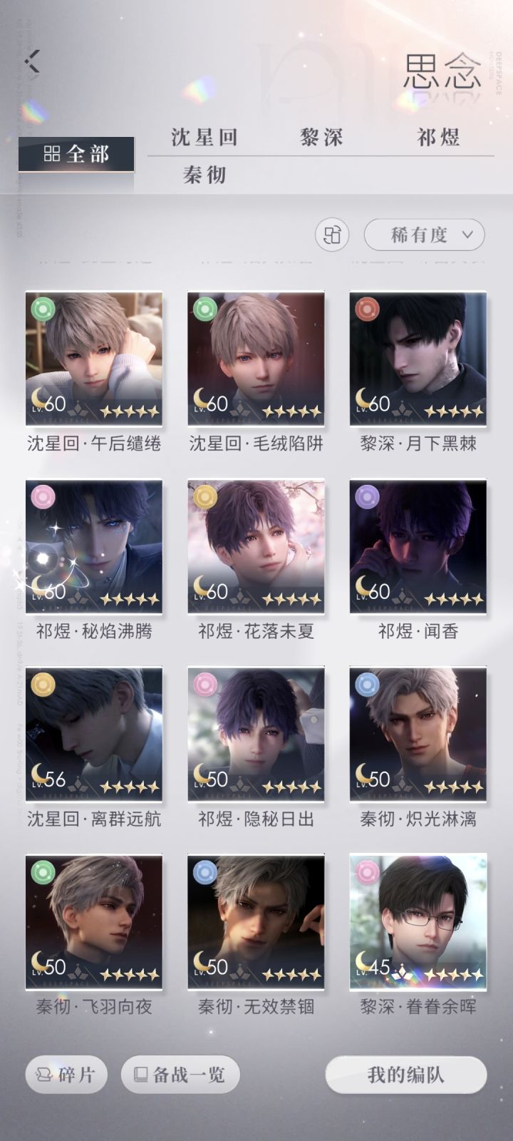 【不看我后面的言论谁能看出来我推谁??】虽然四个饱饱都很好,每个人的约会我都看,轨道也会打,能打多少算多少,因为要薅钻但我主推梨和彻的啊啊啊,卡也只养他们俩的,到底是怎么做到这么平均的我嘞个豆#恋与深空 #恋与深空秦彻 #恋与深空黎深 #恋与深空祁煜 #恋与深空沈星回