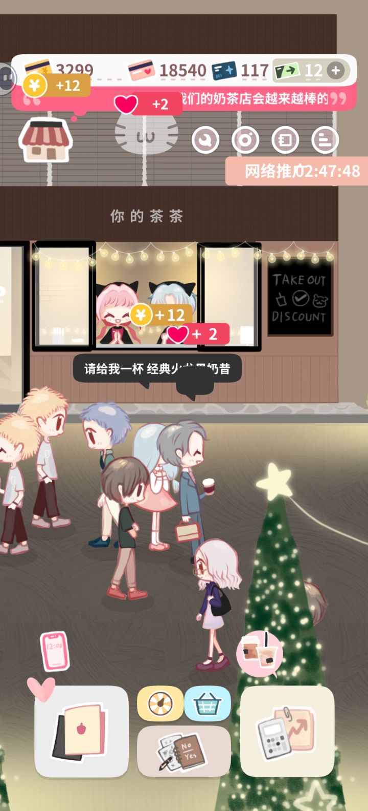 全方位数值优化调整、问题修复、新内容、新兑换码!欢迎大家回归更新!游戏将继续优化,恢复更新频率、直到游戏最终完成。【本次新增内容】1. 开放第四个地址:海滨!2. 第四个地址的自定义新功能:换装!3. 小铺的大小会限制最多奶茶研发数量了!4. 新增第七个成就,失败研发奶茶100次!5. 新增多国语言:法语、俄语。6. 房产商发来的新短信【数值调整】1. 缩短签到天数,每五天即可