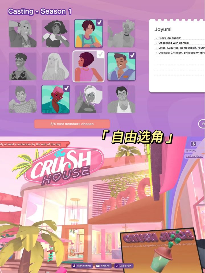 💞《心动小屋》◾️恋综模拟|生活模拟|恋爱|冒险 💞重生之我在90年代当恋综女主?nono,是直接成为恋综导演!💞你即将执导 1999 年zui热门的真人秀《心动小屋》!这档节目的要求很高,不过风险更高。每一季你都必须亲自选角、拍摄并制作!💞你的目标只有一个,就是满足观众的猎奇心理,其中不乏狂热之徒。不小心就会面临停播风险! 💓千禧年复古风💓高自由度的嘉宾搭档💓高自由度的摄影体验