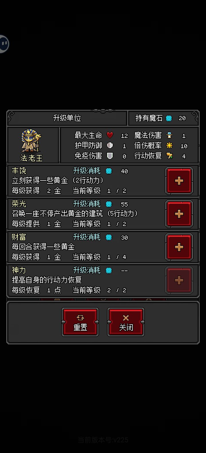 本来没有写攻略的打算,因为这个游戏不难,多尝试几遍基本上都能过,但是这个套路真的有爽度普通模式按照标准攻略先过,德古拉➕蝙蝠➕精灵剑士,德古拉点个蝙蝠就行,其他的随意,蝙蝠可以点满,高行动力加飞行➕德古拉无线召唤,前期很强力,精灵剑士优先点满,他是所以兵种中最肉的,高血量9免伤盾➕攻击恢复血量,必需要的肉盾但在后面有几关,有一个敌方兵种,高防加免伤,蝙蝠和精灵剑士打他显示全是免伤,不掉血,很