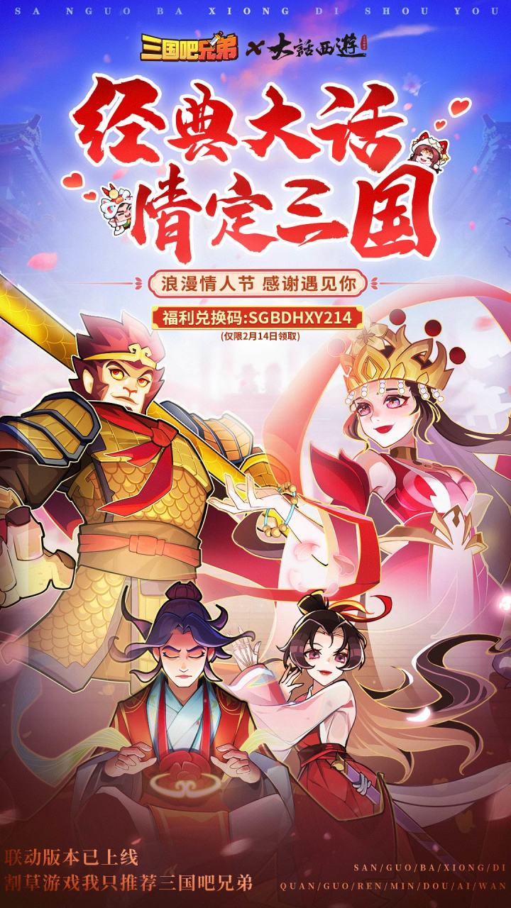 曾经有一份真诚的爱情放在我面前,我没有珍惜,等失去的时候才后悔莫及......如果爱情有期限,那一定不止一万年......至尊宝和紫霞送来情人节礼包啦~!祝小将军们过个甜蜜的情人节或是早日遇到自己的那个TA~※情人节兑换码:SGBDHXY214(仅2月14日有效)※晒联动活动得礼包将三国吧兄弟游戏内的大话西游联动活动页面截图发至评论区,抽取50位小将军送出礼包一份~>>开奖时间:20