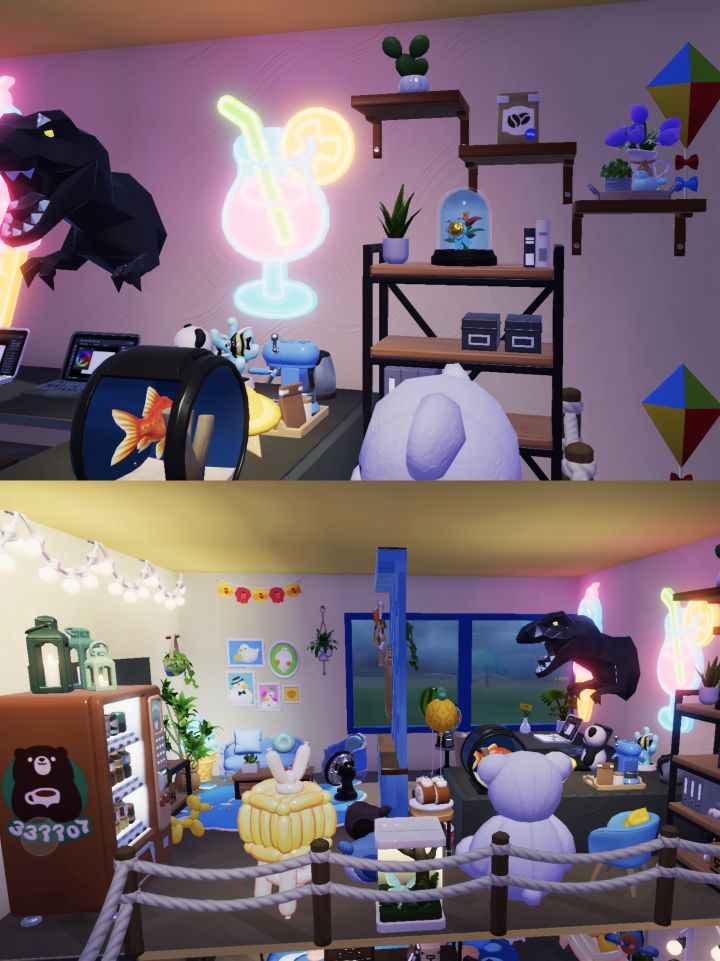 咳咳,其实是自己搭了个阿宅快乐屋出来!本游戏死宅就是在游戏里也要拥有自己的电竞房~一楼是投影仪和 switch大屏(简陋版)😂二楼是双人电竞桌➕小电视,旁边的糖果机、饮料机和零食车方便随时补充能量😋还不快拉上你的搭子一起住进来!#心动小镇 #心动小镇创作计划 #沙滩乐园季创作计划 #心动小镇装修 #情侣电竞房