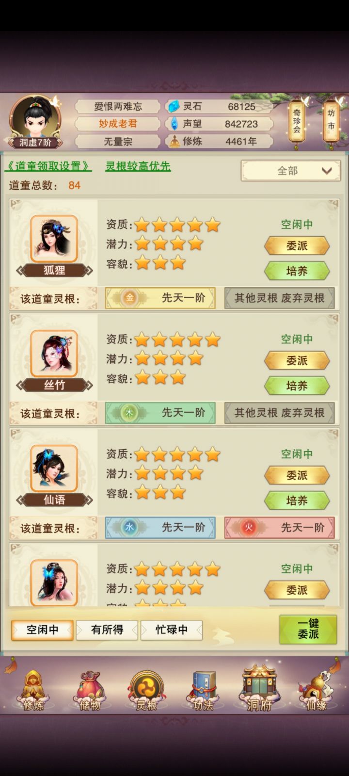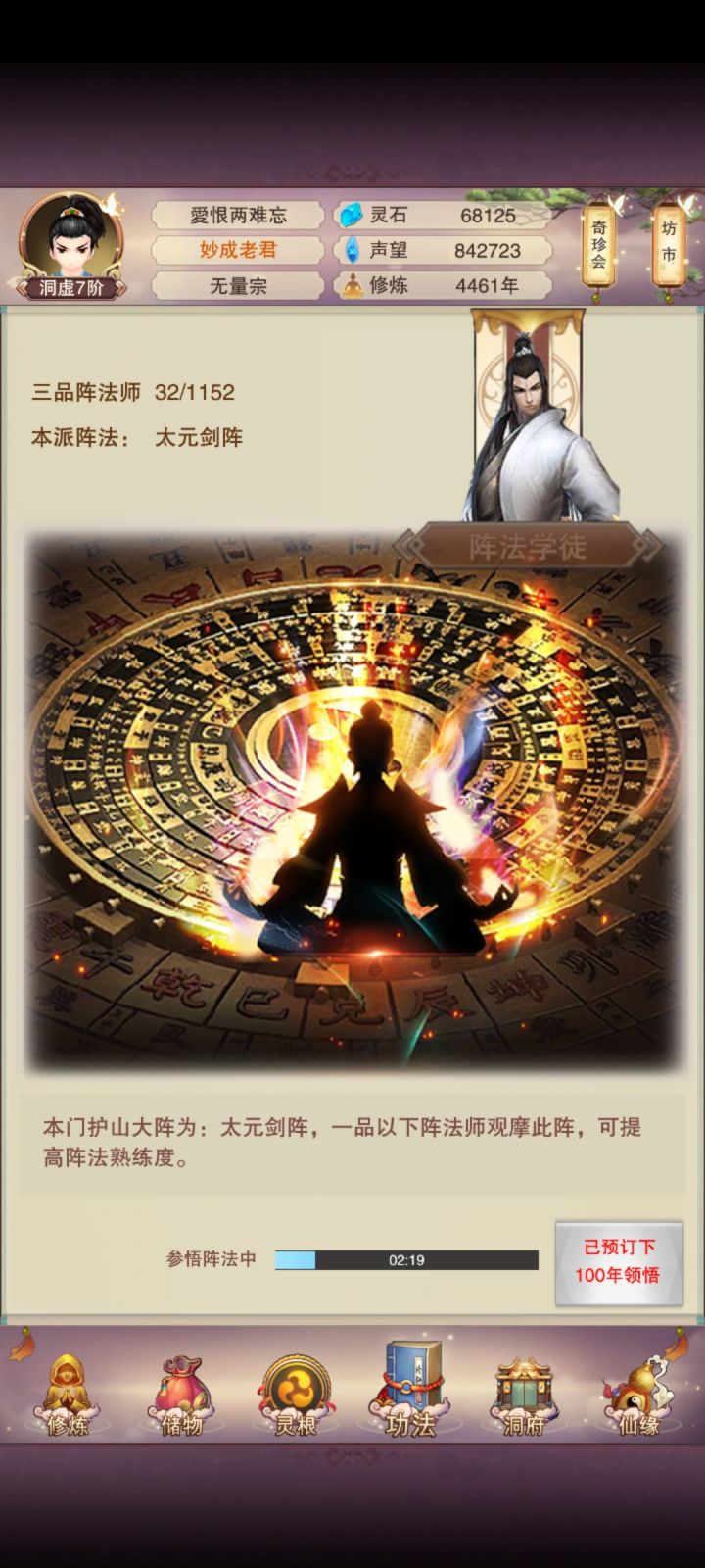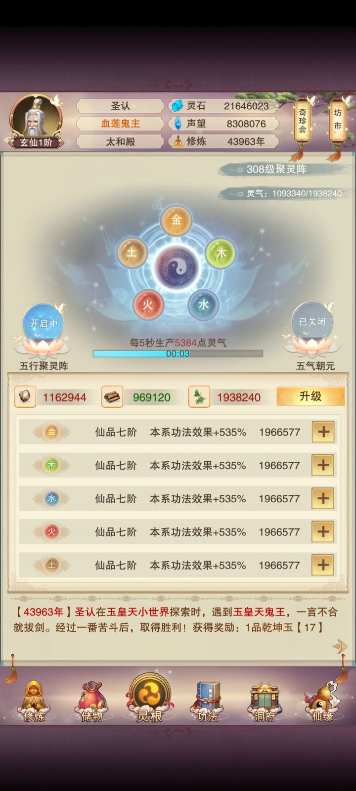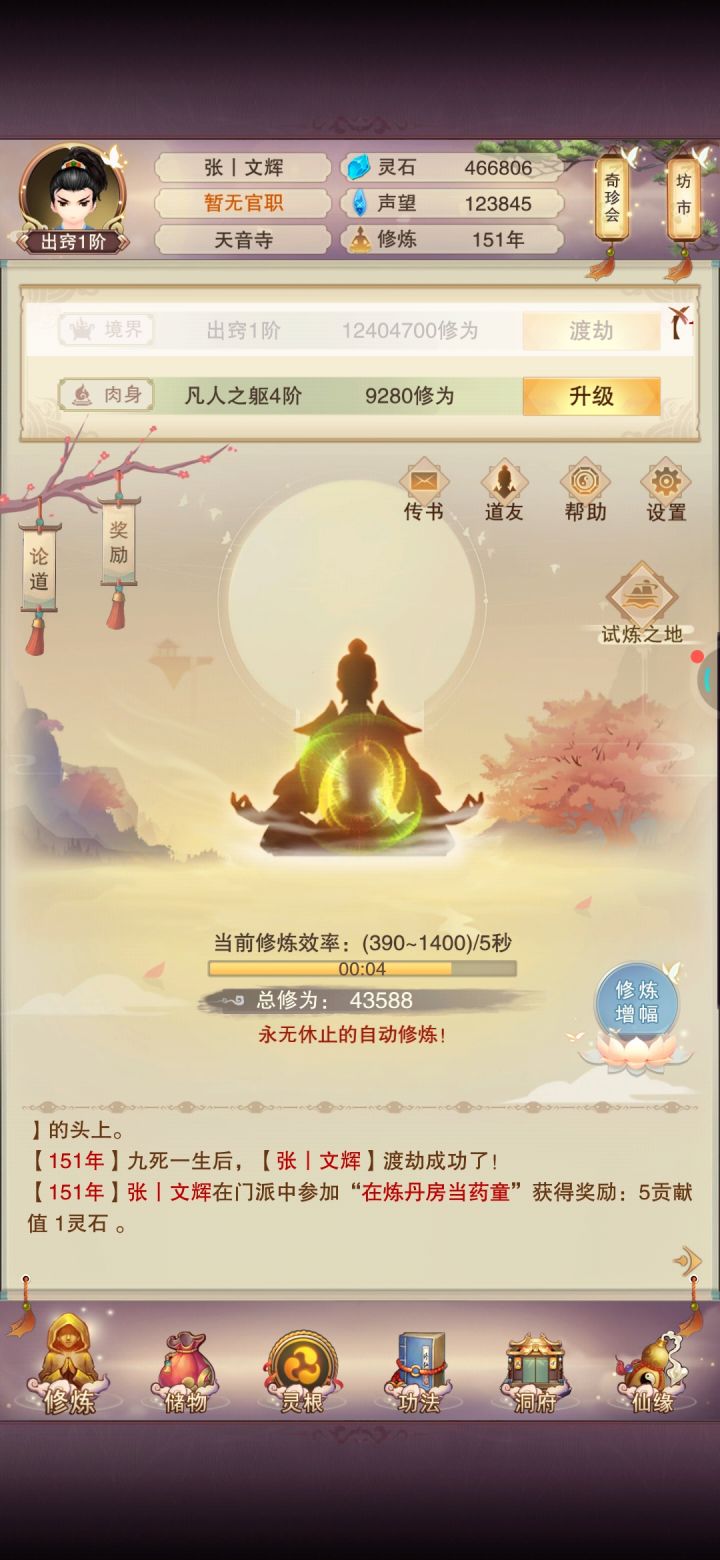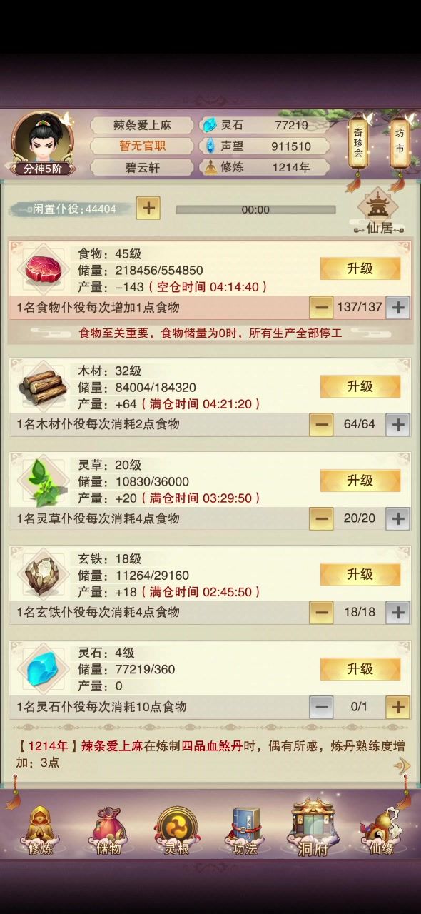 12/11 修为在洞虚7,阵法已经三品了,但是多得贡献不能浪费了,再多挂一会,挂到0点把明天点酒换了再刷门派。61洗髓的道童齐了,现在66洗髓,再过两天多应该能到71了。继续全天十刷石头做炉子。立志熬嘎全区道友的第四十七天!!!#想不想修真新区