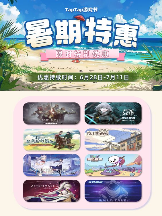 TapTap-2024暑期限时特卖即将开始啦!后续分享值得试玩的游戏噢~⏰时间:6.21 - 7.8🎮帕斯卡契约🕹原35r✅现25r🎮旋转音律🕹原18r✅现9r🎮艾希🕹原18r✅现12r🎮浮岛冒险🕹原18r✅现12r🎮心渊梦境🕹原24r✅现18r🎮无处遁形🕹原30r✅现18r🎮如果可以回家早一点🕹原8r✅现1.5r🎮铸时匠🕹原12r✅现3r🎮重构