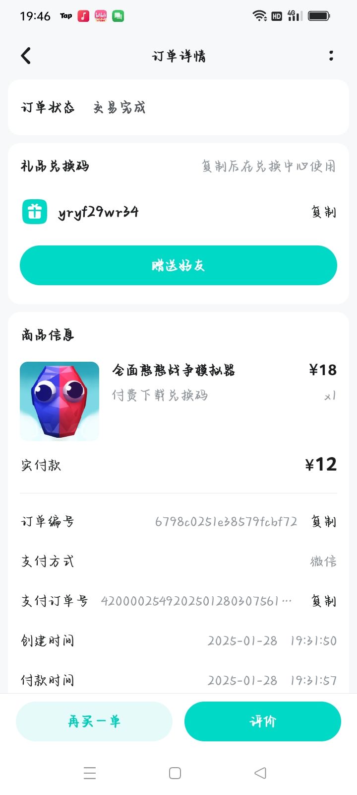 送别人的送别的时候多买了一份,白白浪费12块钱,懒得做视频,论坛随便找个人送吧,先到先得,兑换码:yryf29wr34#全面憨憨战争模拟器 #我为什么下载不了全面憨憨战争模拟器