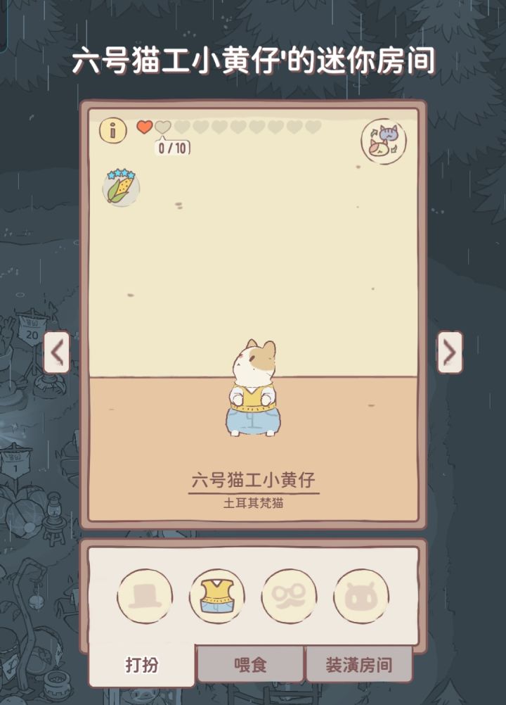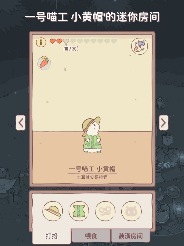 我看起来挺闲的,热衷于给每只猫取名每只猫和服饰都有自己特殊加成一号猫工:切胡萝卜加成+青蛙衣+草帽二号喵工:切草莓(目前没解锁)五号猫工:切卷心菜加成+青蛙帽六号猫工:扒玉米加成+毛衣牛仔裤\小小咪 去旅游#我和猫咪的美好生活#游戏讨论#我和猫咪的美好挺好生活#猫咪和汤#新游安利#休闲游戏