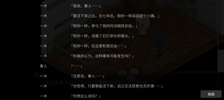 《我在七年后等着你》是一款以解谜悬疑为核心,融合了科 幻与情感元素的像素风游戏。它像一封未拆封的信笺,藏着 时光的褶皱与岁月的低语。故事以失忆少年春人的视角展 开,他在七年后回到小镇,试图解开童年约定背后的秘密 每一章的结尾都似刀锋划开迷雾,让人汗毛直竖,却又忍不 住深陷其中。(玩的过程中真的心头不觉一紧) 游戏的像素画风简约却充满生命力,仿佛未于的水彩在记忆 里泅开。配乐如潮汐般涌来,将悬疑与