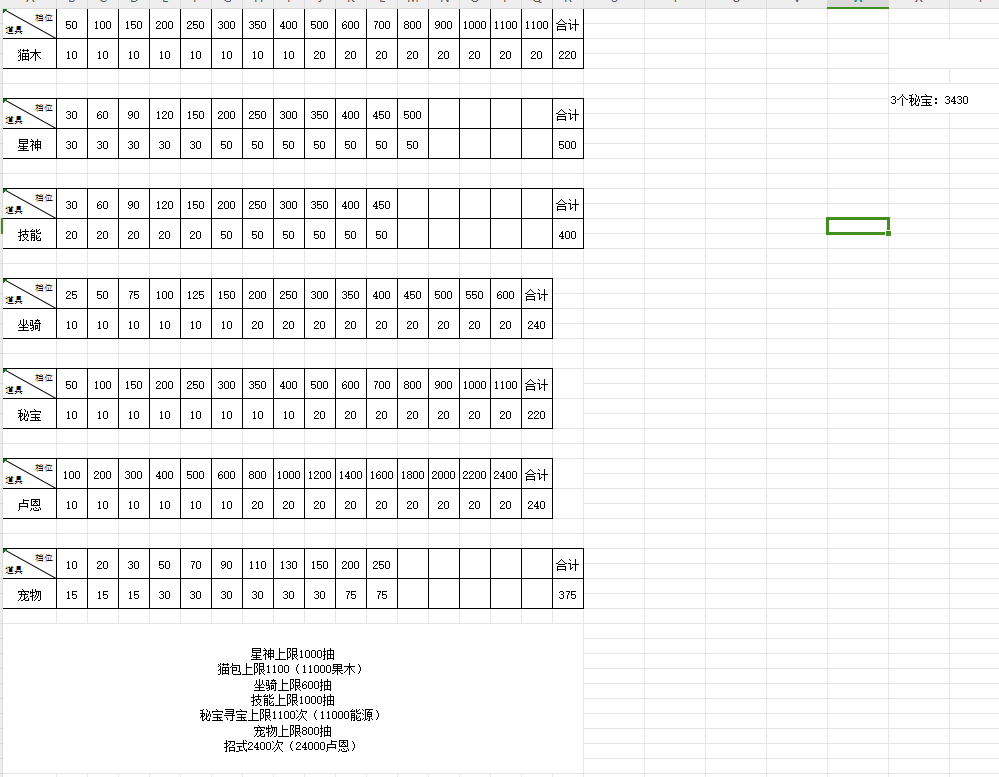 除了猫木,提前2周囤的资源,最终6+98拿下3个秘宝,一盘清空背包资源,同时自己做了每个资源对应每个档位获得的道具表格,需要可以关注私聊#麦芬纸飞机活动规划 #出发吧麦芬 #出发吧麦芬宠物 #出发吧麦芬塔莎 #我在中庭大陆打麦芬