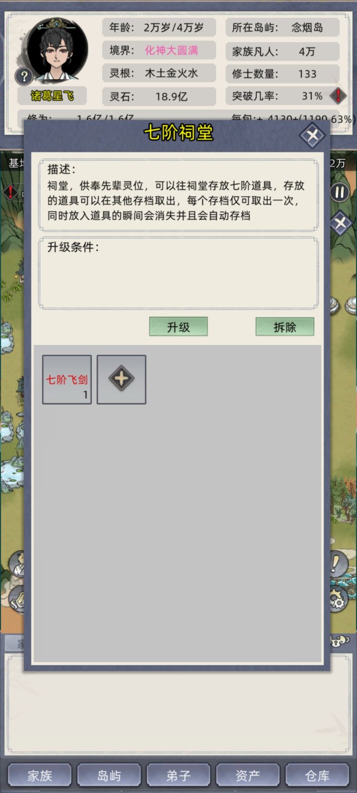 #我在游戏里的地位 诸葛家族历经岁月发展直今已有4万年,期间遭受无数的敌人觊觎和针对,也是成功挺过来了,飞升数百位老祖,族中也是拥有6把仙器,然乱星海域还是资源有限已经无法进一步的进步