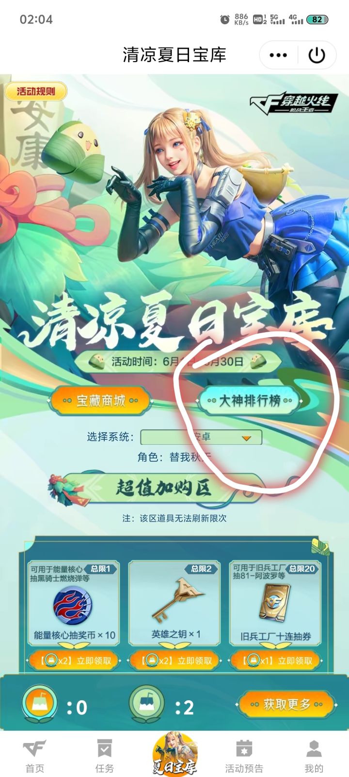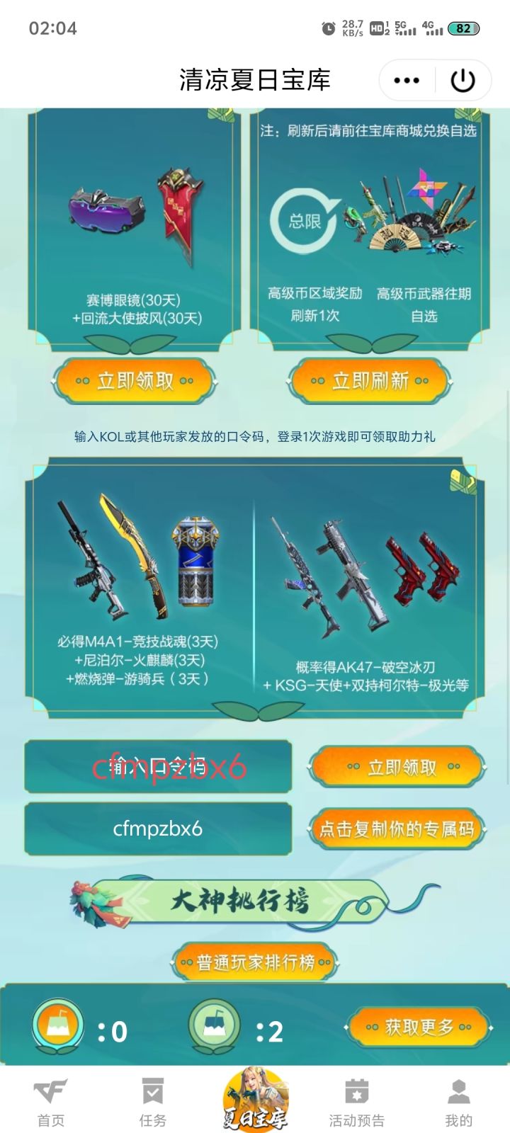 进入清凉夏日宝库输入口令:cfmpzbx6即可领取888钻石+源·AK47-无影神兵永久【概率获得】M4A1-赛博雷神+鹰-天神+TAC-天使(永久)M4a1-电竞战魂+AWM-天使+沙鹰-幻兽(永久)#cf手游 #穿越火线 #穿越火线手游 #穿越火线枪战王者 #穿越火线枪战王者攻略 #必须打卡的游戏风景 #我在游戏里的地位