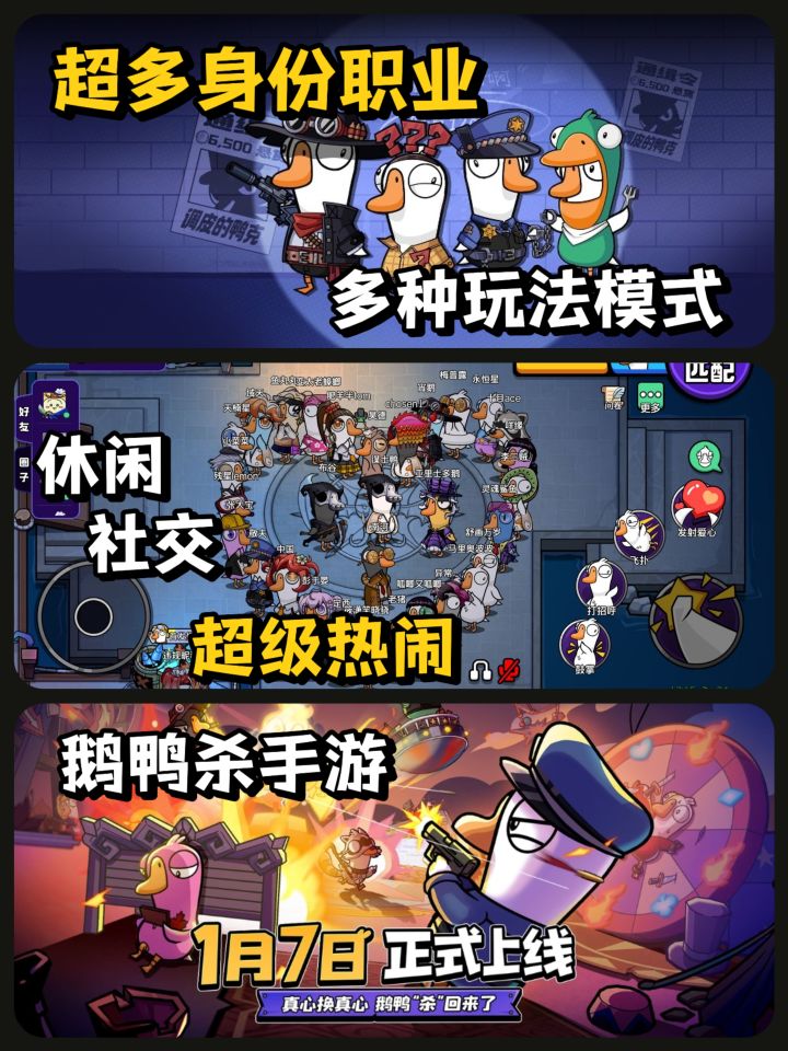 ‼️鹅鸭杀的手游版终于要上线了!卡通搞怪风格,内存占用也不大,对手机容量紧张的小伙伴也很友好哦!💡一局5-10分钟,上手简单,轻松好上手,内含几十个小游戏的派对玩法,开麦玩也太快乐了吧!妥妥的社交神器!🔥1月7日就上线了,一起来锻炼“心眼子”吧!#鹅鸭杀手游 #鹅鸭杀公测定档 #我是鹅鸭杀网红鹅 #休闲游戏推荐 #派对游戏 #休闲游戏 #多人游戏