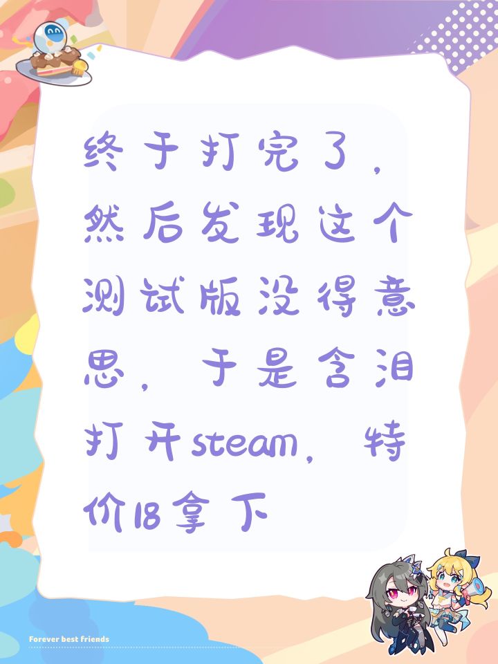 #我来自江湖 终于打完了,然后发现这个测试版没得意思,于是含泪打开steam,特价18拿下