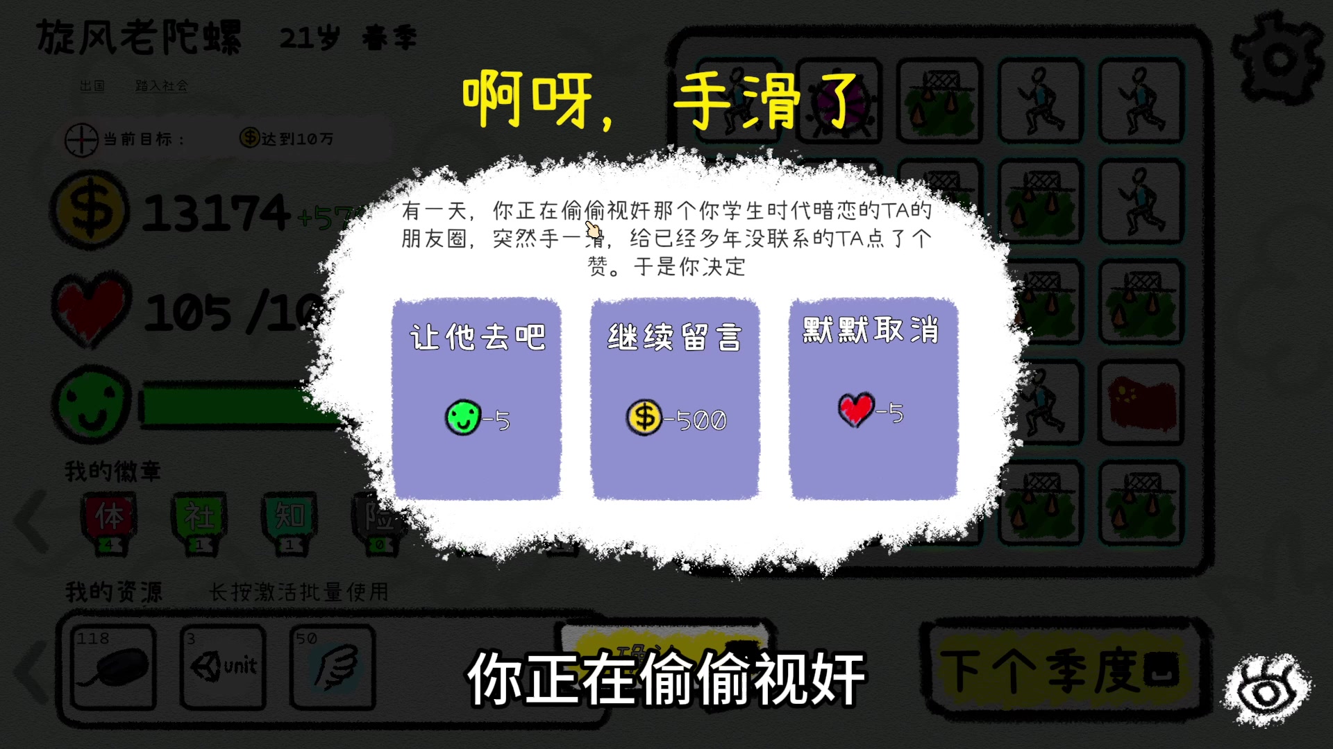 《我的人生》一款类“幸运房东”的卡组构建游戏 steam售价29元,精品游戏,内容丰富, 主要是流派很多,而且有很多的梗,玩起来真的又爽又搞笑 美中不足的就是,制作方是两个人的小团队, 但是态度很好,更新bug很勤快, 后续更新内容还会加入父母系统,趁现在入手肯定不亏!! #游戏冒险家大集结 #steam游戏 #发现好游戏 #我的人生