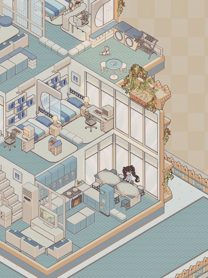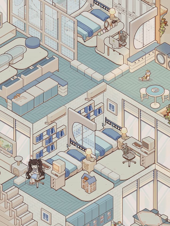 这个蓝色系太喜欢啦!二楼做了一个房间分隔可以睡两个人,朋友来了也不怕啦❗❗二楼的洗衣机是给客人专用哒❗❗#我的休闲时光 #我的休闲时光创作官 #我的休闲时光蜗居物语 #我的休闲时光装修分享 #我的休闲时光云栖雅筑 #装修游戏 #少女心游戏安利